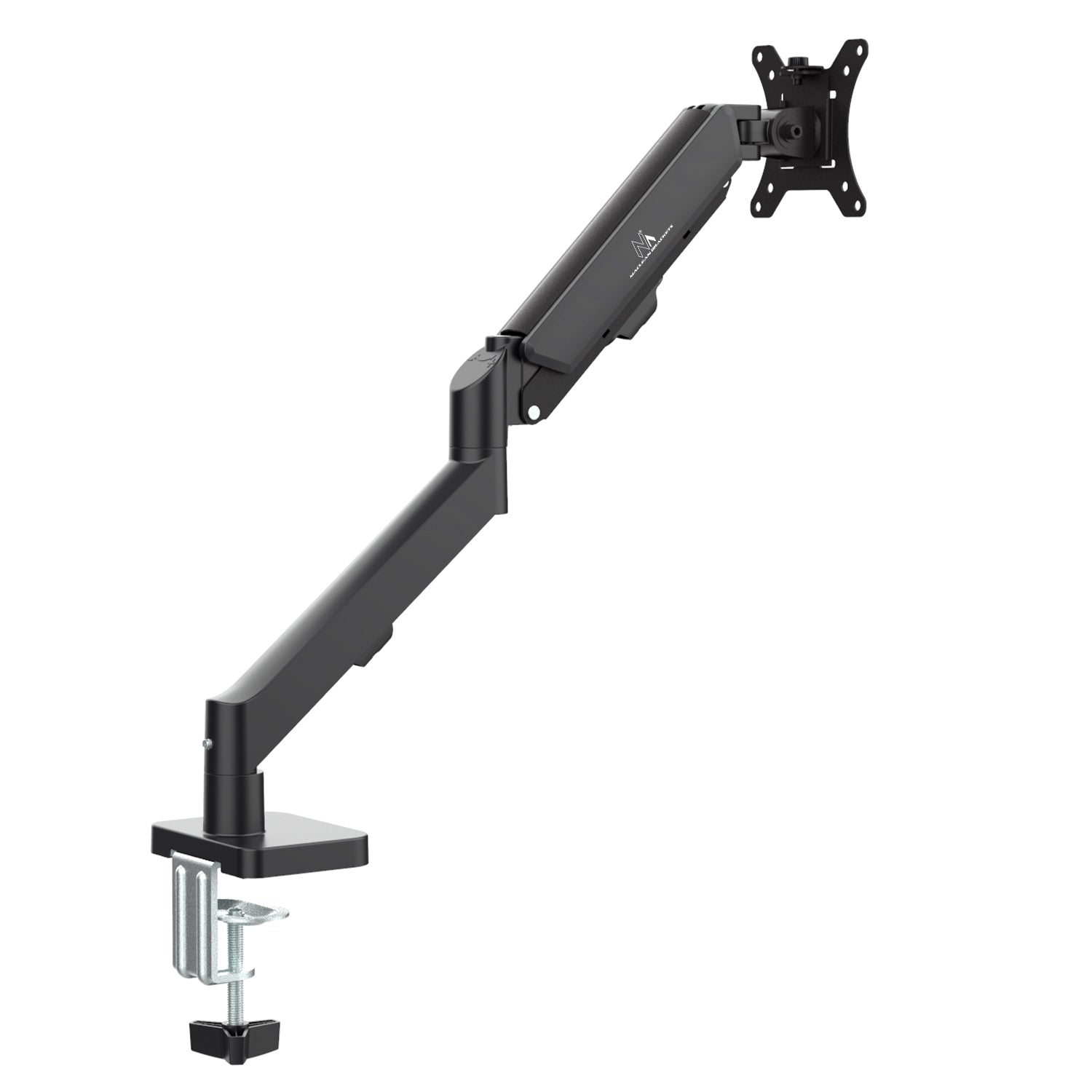 - Avtagbar VESA-platta gör det enkelt att montera och ta bort bildskärmen utan att behöva skruva loss hela armen