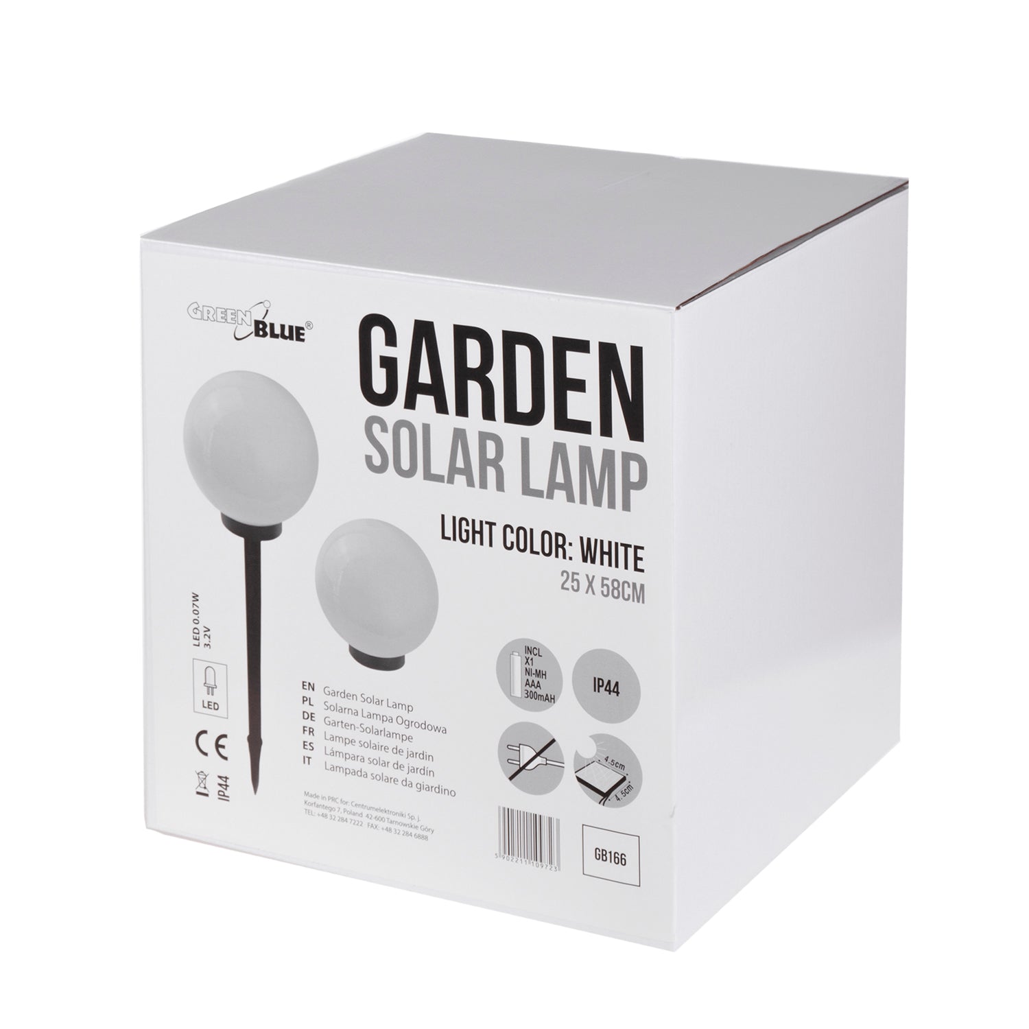 GreenBlue solcellslampa, fristående, trädgård, sfär 25x25x58cm, vit LED, GB166, 4 st