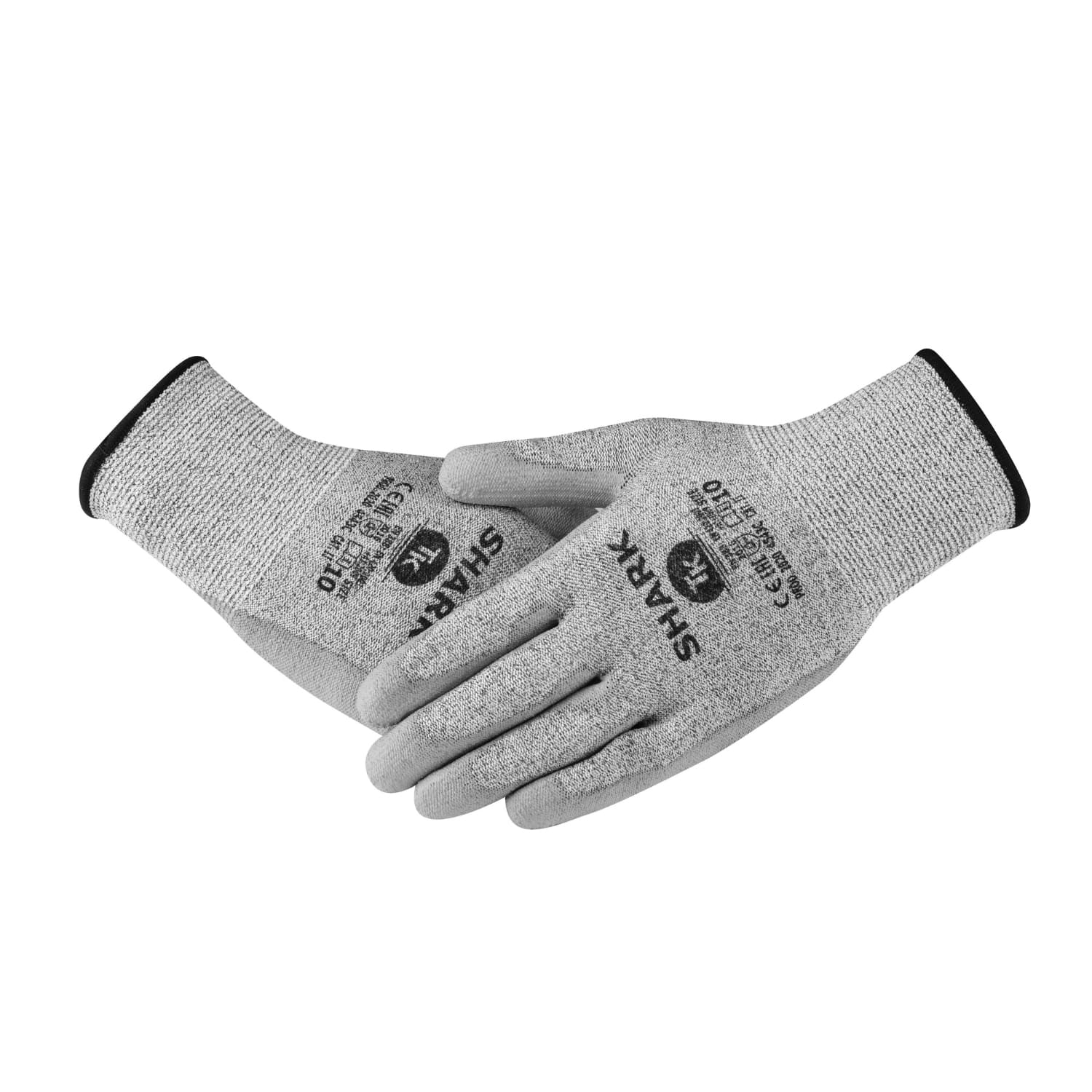 TK Shark-arbetshandskarna är tillverkade av ultrahårda polyetenfibrer (UHPPE) som ger ett utmärkt skydd mot skärsår. De är belagda med polyuretan i greppområdet för att ge en bra känsla och ett bra grepp när du arbetar. Handskarna är utrustade med elastiska manschetter som är behagliga att känna på och som anpassar sig väl till handleden för att garantera en hög komfort.