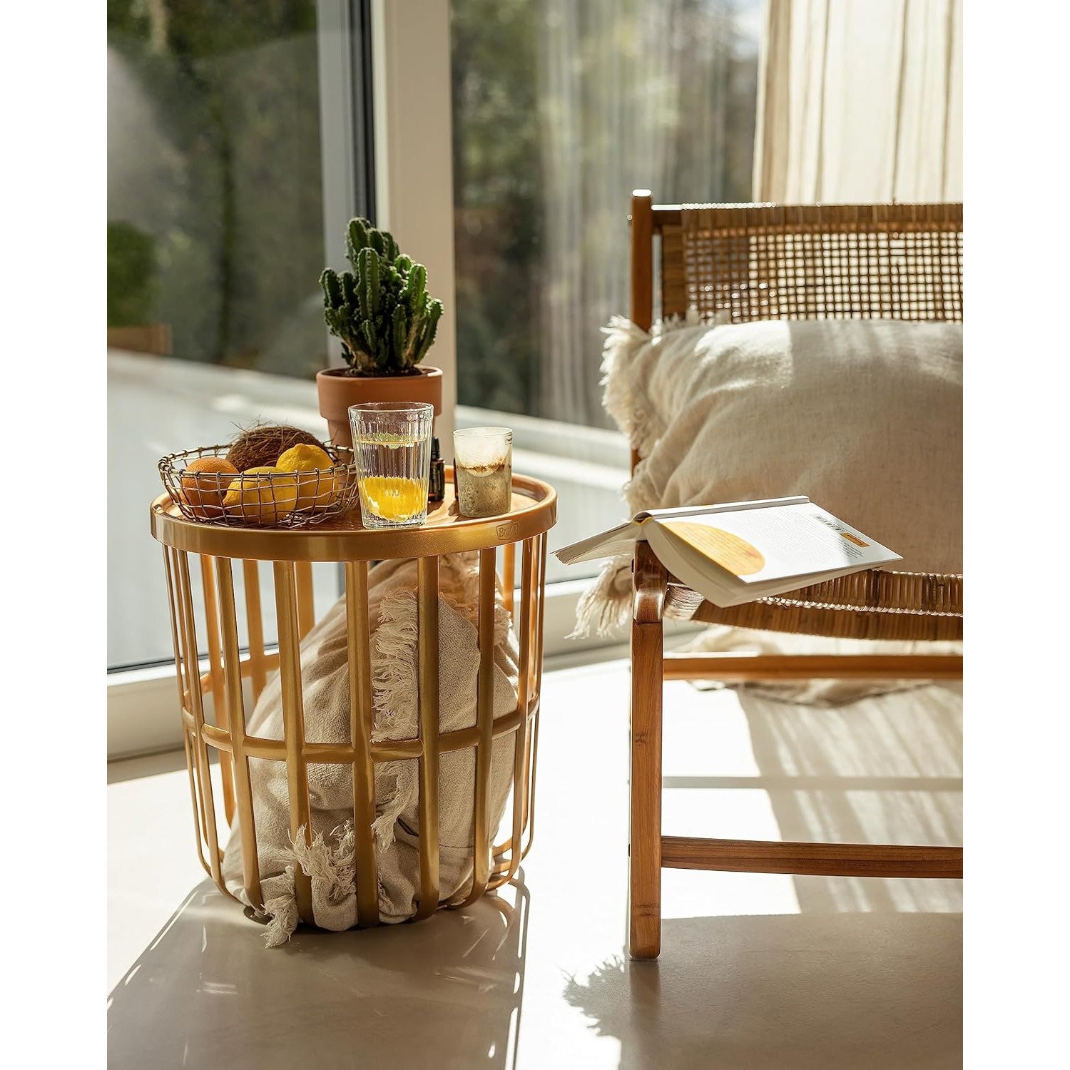 Branq-bord, runt, med förvaringskorg, guld, Zen 1850