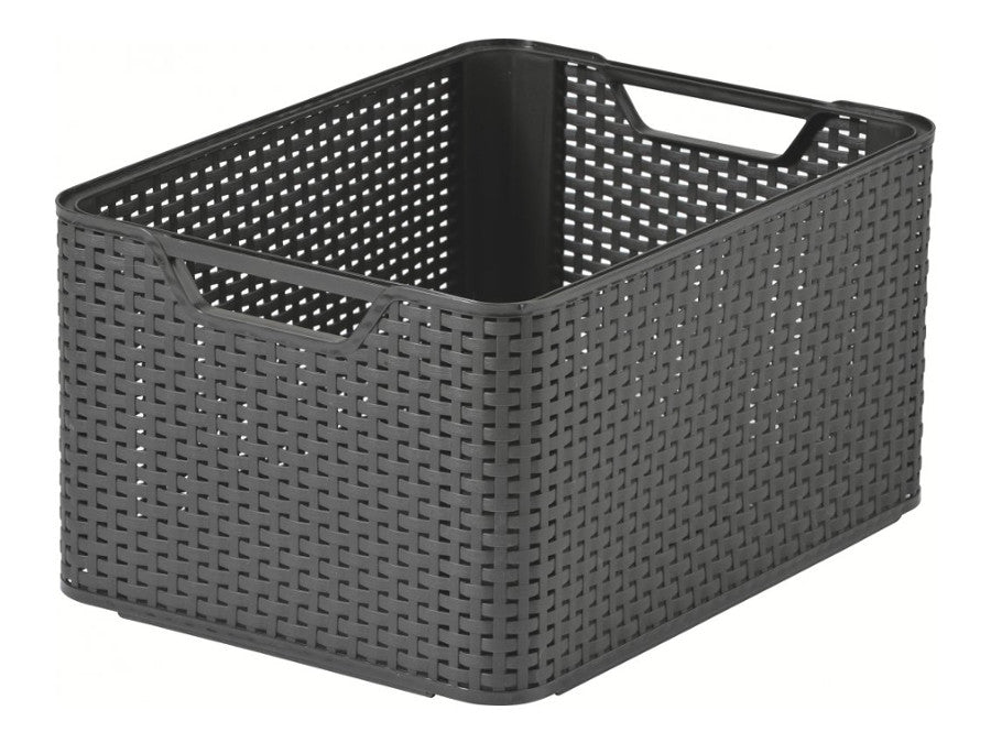 Curver korg, flerfunktionell, med lock, grå, Rattan Style L