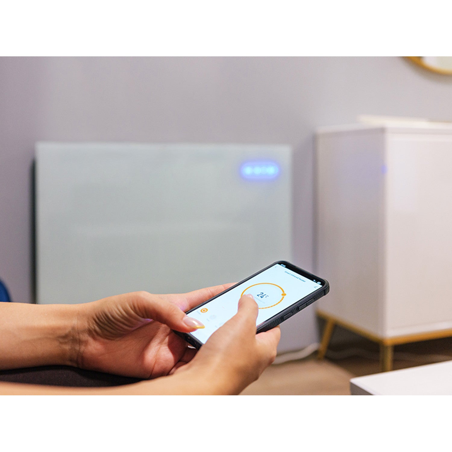 LAFE ThermoSmart är utrustad med en modern pekskärm med tydlig display som möjliggör precis inställning av temperatur, driftstid och alla tillgängliga funktioner. Du kan också styra enheten på distans via en mobilapp på din telefon, vilket ger dig full kontroll – oavsett var du befinner dig.