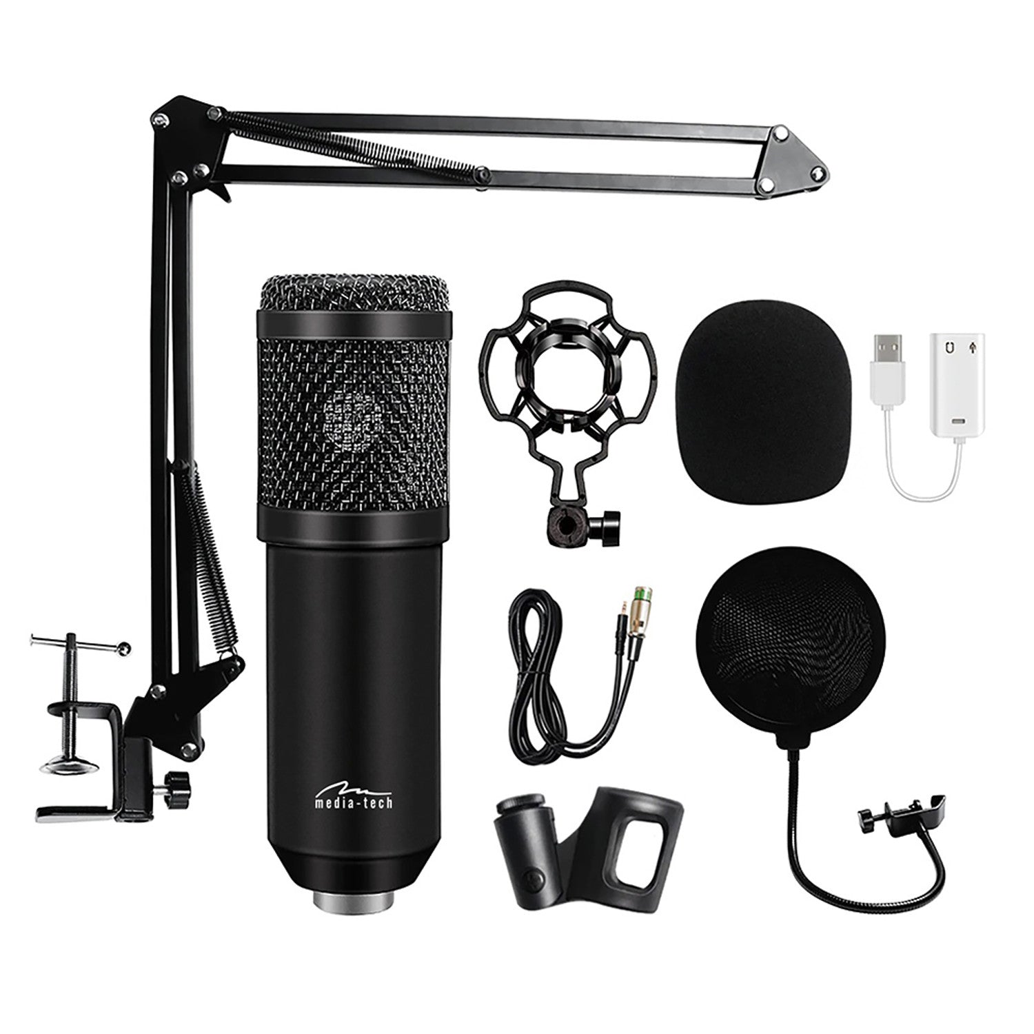 Media-Tech kondensatormikrofon, justerbart stativ, tillbehör, MT397K